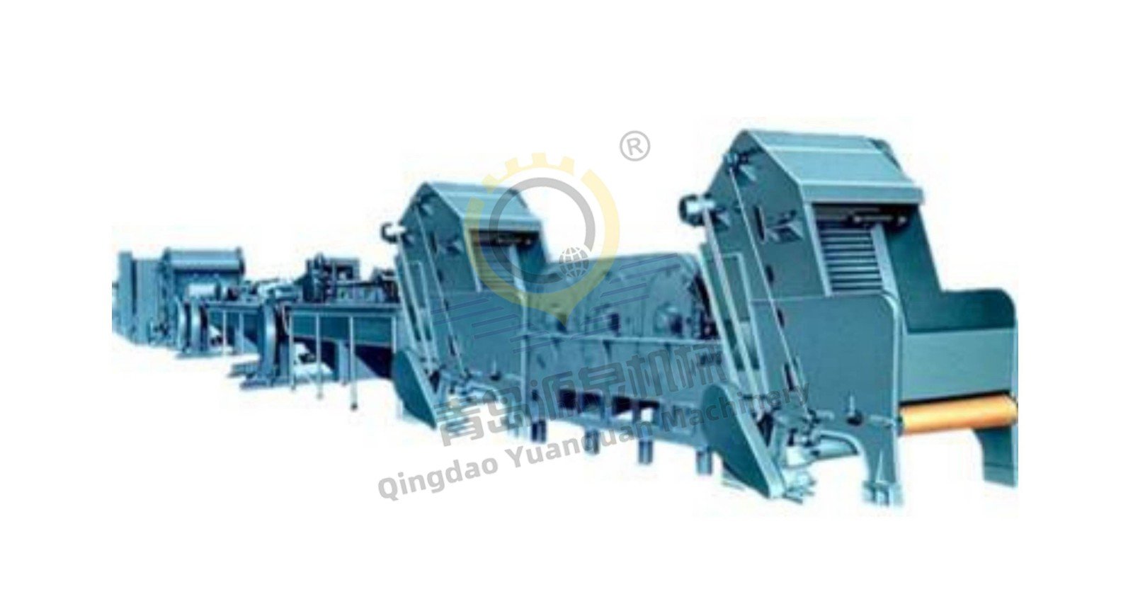 آلة التغذية الأولى ← آلة إزالة الغبار ← خزان الغسيل الأول ← آلة العصر الأولى (ماكينة عصر المياه) ← خزان الغسيل الثاني ← آلة العصر الثانية ← خزان الغسيل الثالث ← آلة العصر الثالثة ← خزان الغسيل الرابع ← آلة العصر الرابعة ← خزان الغسيل الخامس ← آلة العصر الخامسة ← آلة التغذية الثانية ← آلة التجفيف.